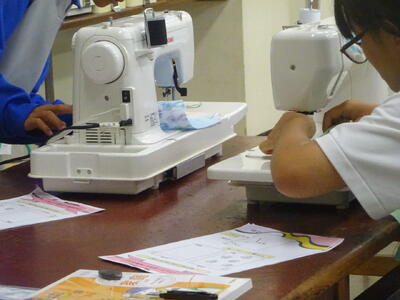 1年生の家庭科の授業では、「ティッシュケースカバーを作ろう!!」をテーマに被服室にてミシン等を用いて一人一人が作品を作成しています。ミシンの操作を慎重にして作業している姿が印象的でした。