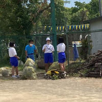 炎天下の中でしたが、主にプール周り、校庭周りの除草作業・枯枝の廃棄等を実施することができ、とても綺麗になりました。