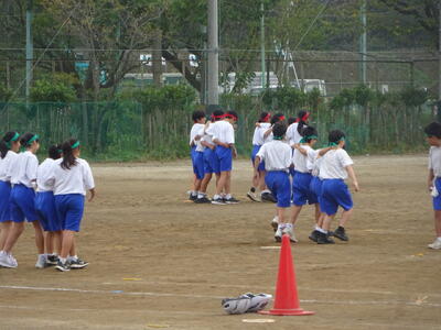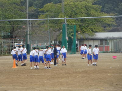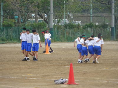 1年生の体育の時間では、体育祭の種目である4人5脚の練習が行われていました。1年生にとっては、慣れるまで少し時間がかかるようです。