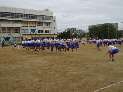 今日の北中(10月9日) 投稿: 川口北中学校 (16:40) 陸上競技の県新人戦の2日目が、熊谷スポーツ文化公園陸上競技場で行われました。男子200mに出場、各地区の代表と競い合いました。(緑のユニフォームが北中の選手)今日の体育祭練習は、1、2時間目に1年生、3、4時間目に2年生、5、6時間目に3年生が行いました。体育祭2日前となり、さらに熱が入ってきました。