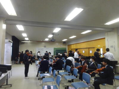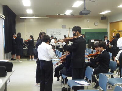 今日の北中(12月3日) 投稿: 川口北中学校 (17:28) 音楽の授業では、バイオリンの授業が始まりました。きれいな音を出すのに苦労していました。3年生は5、6時間目に卒業アルバムの個人写真を撮影しました。