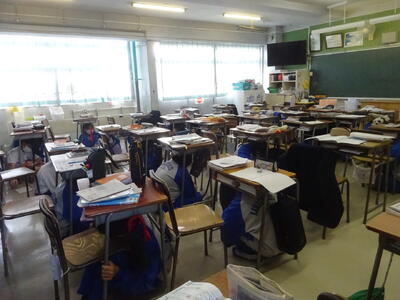 今日の北中(1月15日) 投稿: 川口北中学校 (17:42) 今日の5時間目に今年度最後の避難訓練を実施しました。地震の発生と火災の発生を想定した訓練でした。今回の避難訓練は事前の予告は無しで実施してより実践的な避難訓練となりました。