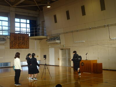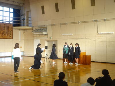 今日の北中(1月28日) 投稿: 川口北中学校 (16:56) 今日は1時間目開始前に、生徒集会が生徒会の主催で行われました。内容は、生活委員会からで、制服の着こなし方、挨拶の仕方について、クイズ形式での発表がありました。インフルエンザ等の感染防止のため、オンラインで各教室に配信されました。