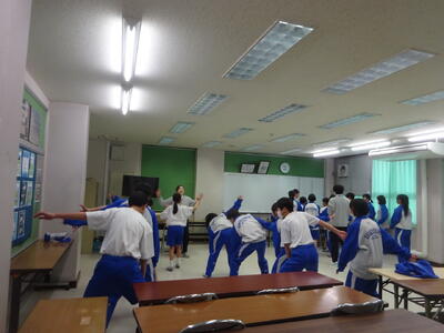 今日の北中(2月16日) 投稿: 川口北中学校 (02/16) 1年生は5時間目に、3年生を送る会の準備で、会場装飾の作成、ダンスの練習が行われていました。装飾はまだ未完成ですが、どのようになるか楽しみです。