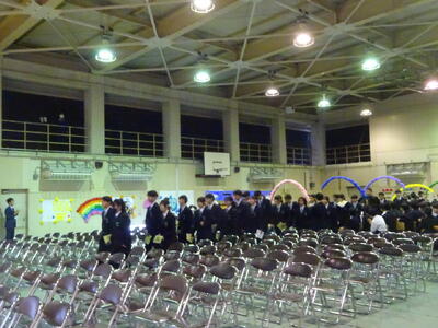 今日の北中(3月4日) 投稿: 川口北中学校 (16:37) 今日は午前中、体育館で3年生を送る会が行われました。1年生は、ダンス、制作発表、合唱、2年生は、ダンス、映像、合唱を披露しました。最後に3年生からお礼の言葉と合唱(群青)が1、2年生へおくられました。3部は3年生のみで、思い出のスライドを鑑賞しました。