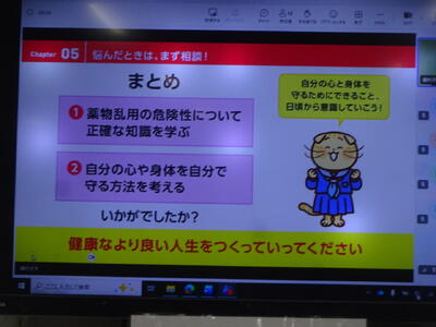 今日は薬物乱用防止教室が行われました。薬物の危険性から絶対に手を出してはいけないことを真剣に耳を傾けていました。