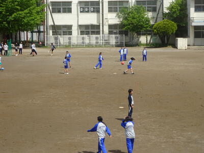 今日の北中(4月27日) 投稿: 川口北中学校 (17:24) 今日の朝はとても強い雨が降り、グランドは水浸しになりました。お昼前に雨はやみ、昼休みはグランドで遊ぶことができました。とても水はけのよいグランドです。