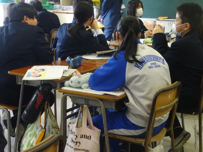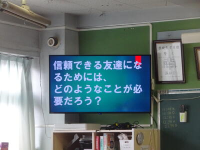 1年生2クラスの道徳授業の様子です。SNSの使い方から友達との信頼関係について、ゴミ問題から公徳心について考えました。